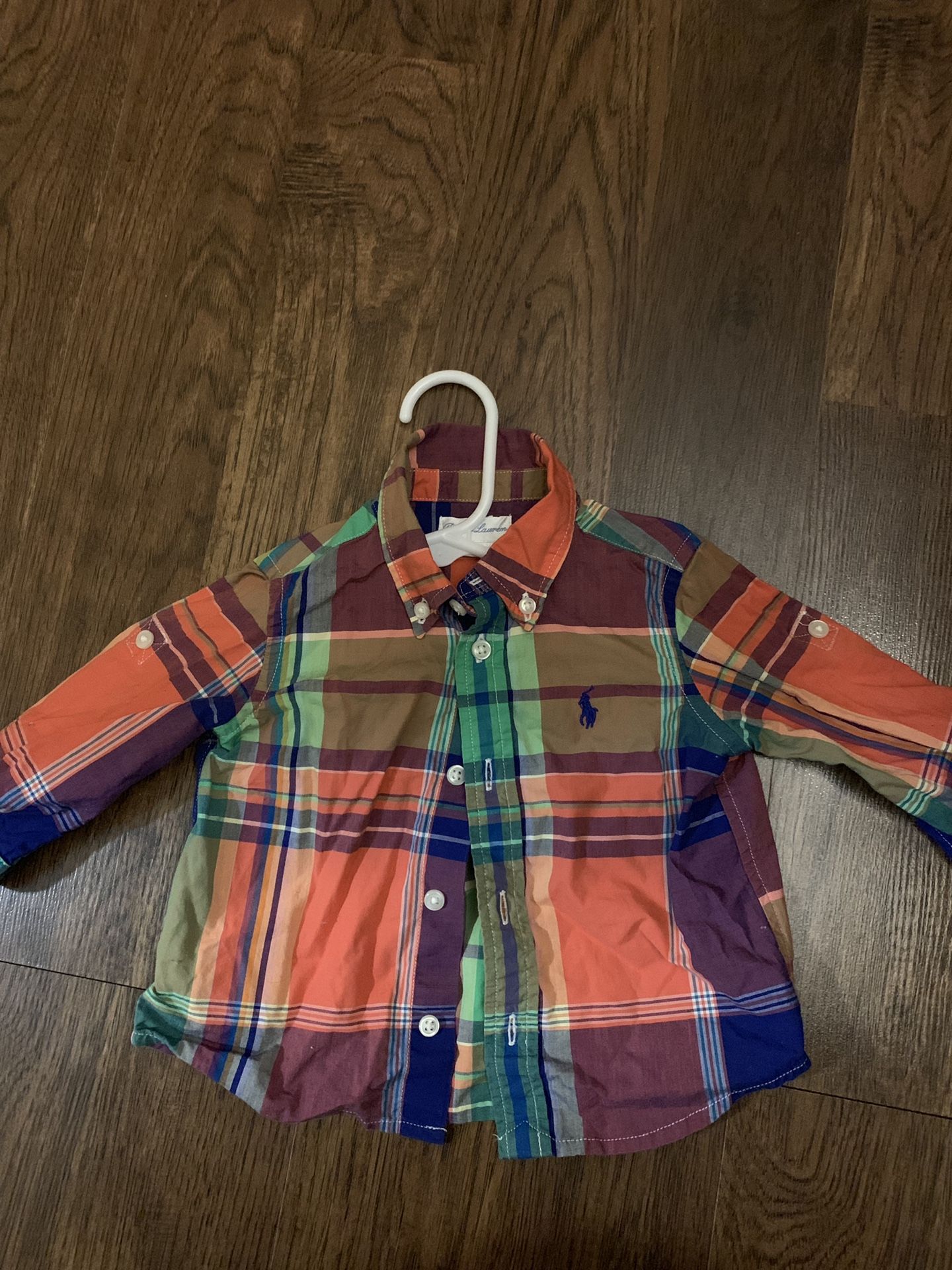 Ralph Lauren Polo shirt in great condition. My son only wore it once. Fits a boy 0-9 months. Let me know if you have any questions.