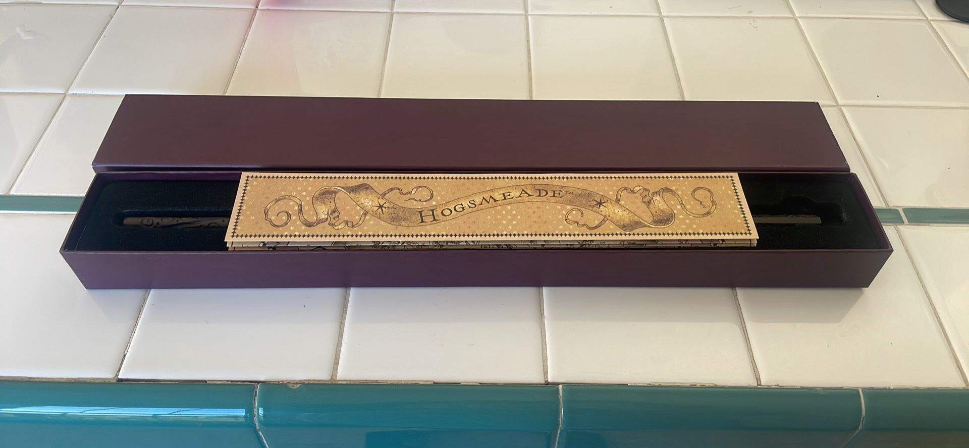 I got this at Harry Potter world in Universal studios in 2015 and the only time it’s ever been taken out of the box was when I was there and had just bought it. It’s been safely stored away so there’s no damage to the wand or box itself.