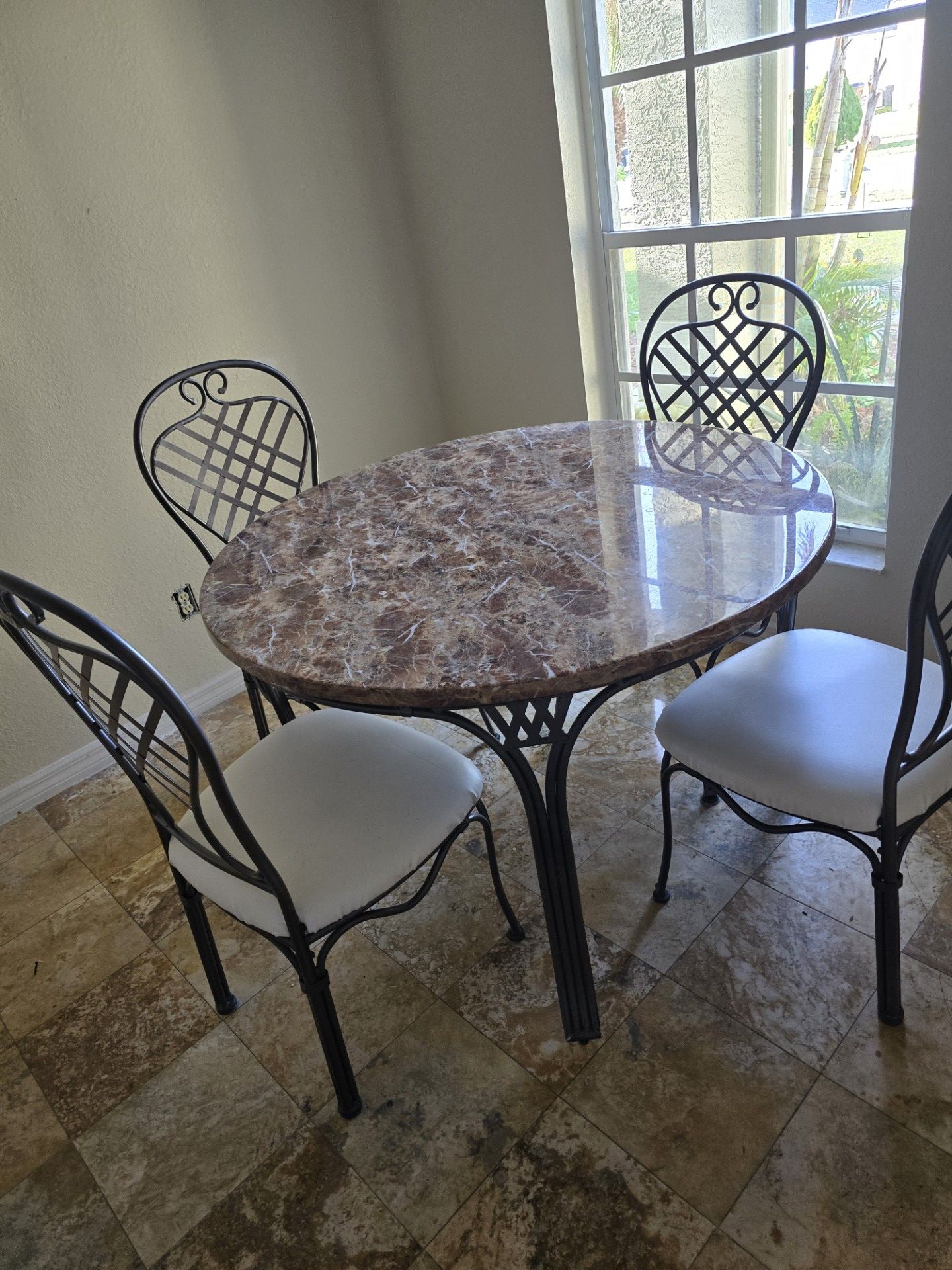 Used 48" round marble table with 4 chairs. Ready to go Few things left in home $135.00