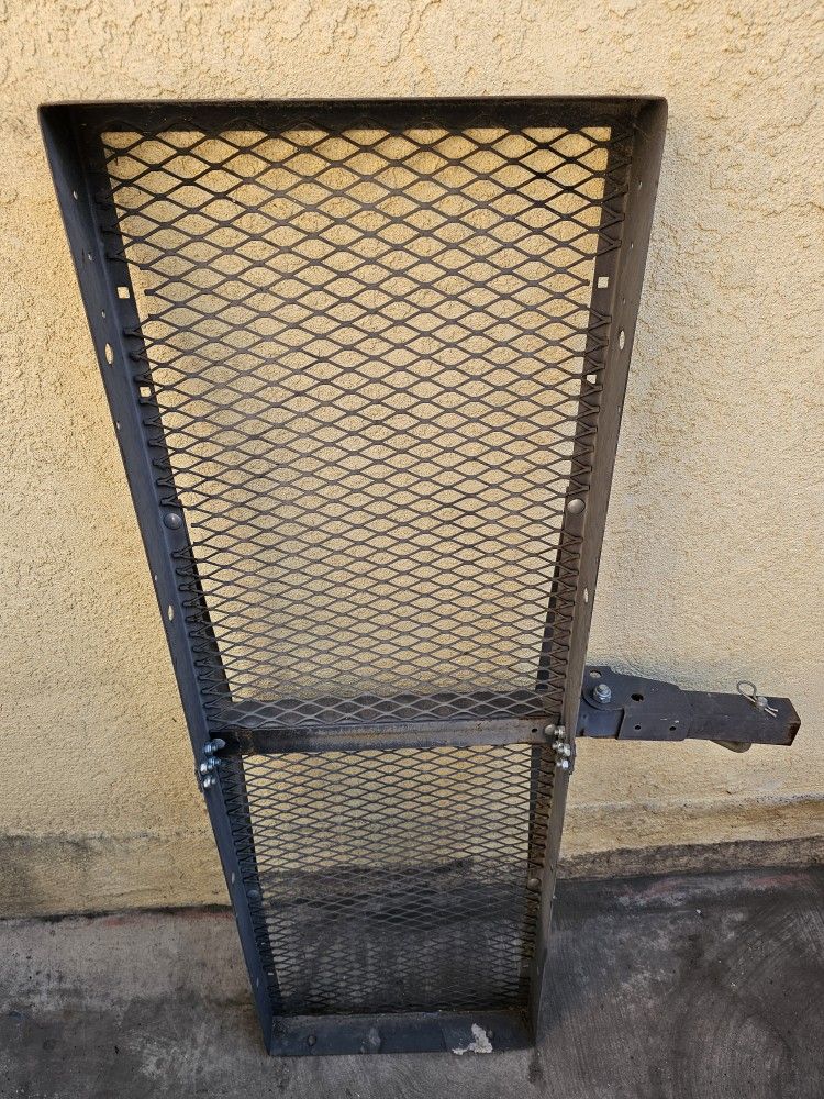 Metal hitch-mounted cargo carrier that slides into a standard 2" receiver. Perfect for hauling luggage, coolers, tools, camping gear, firewood, and anything you don’t want inside the car. Heavy-duty steel mesh design Fits standard 2" hitch Great for road trips, work, moving, or camping Ready to use $90 OBO Message me if interested.
