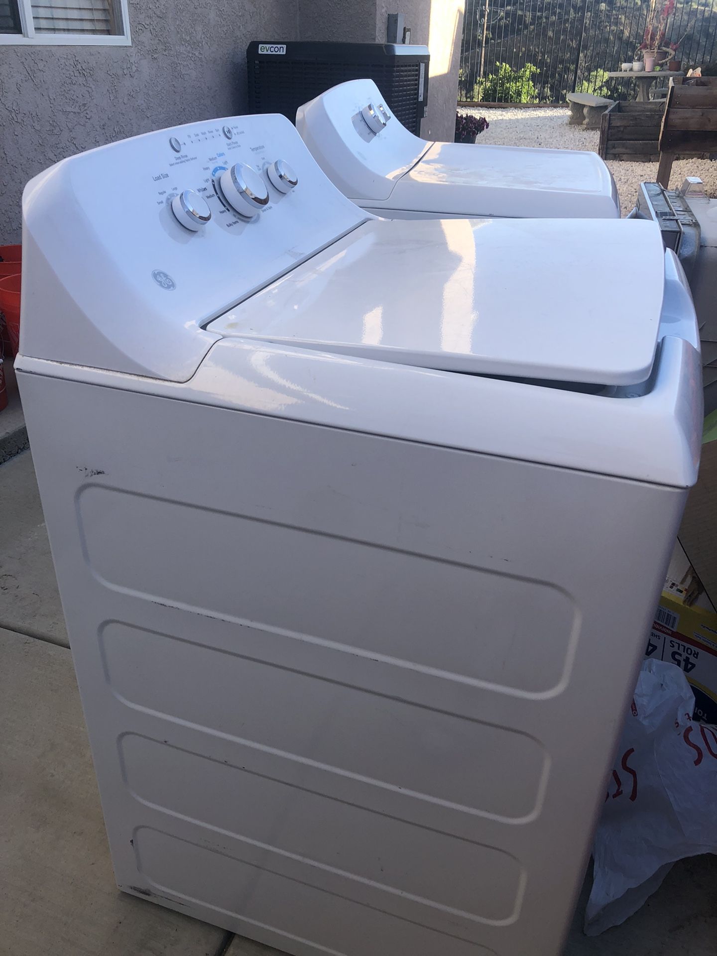 Hello, I’m selling my GE washer and GE dryer. Selling them because we bought new ones. They both work perfectly fine with no issues at all. The washer is a top load and with plenty of space inside also comes with an agitator. The dryer is also GE, with plenty of space as well for a full load or blankets. Selling them both for $600 or $350 each. OBO. I can deliver maximum 15 miles with an additional trip fee.