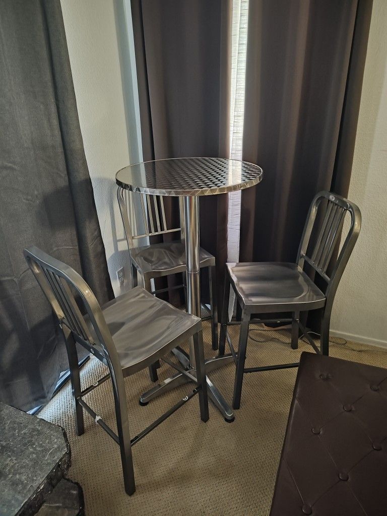 Hi have a nice it's like new high table Chrome with 3 chairs $100 obo