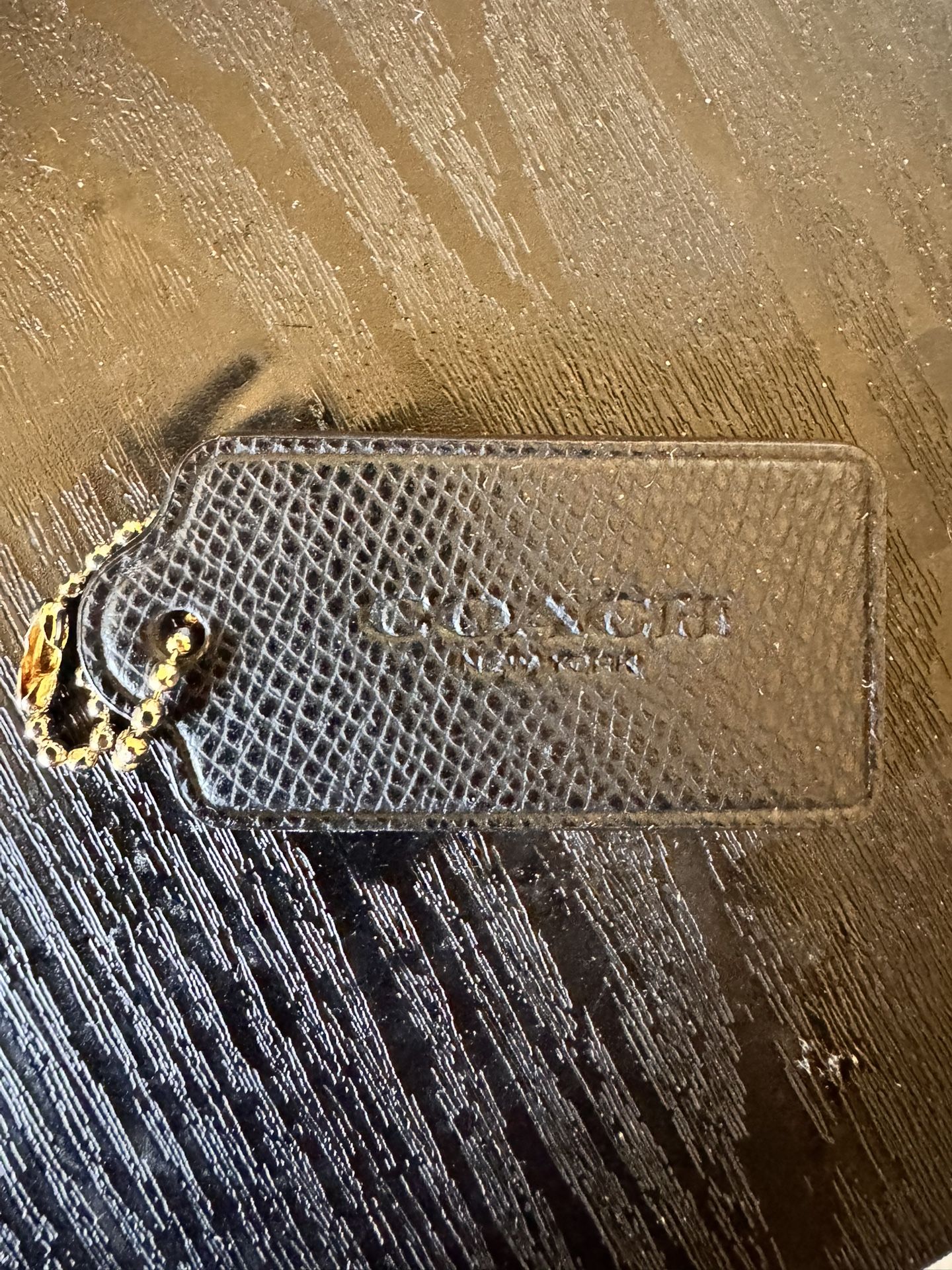 Black leather Coach bag hang tag with gold hardware/chain. In very good gently used condition. Pick up in the Southwest area near Durango and Russell Road.