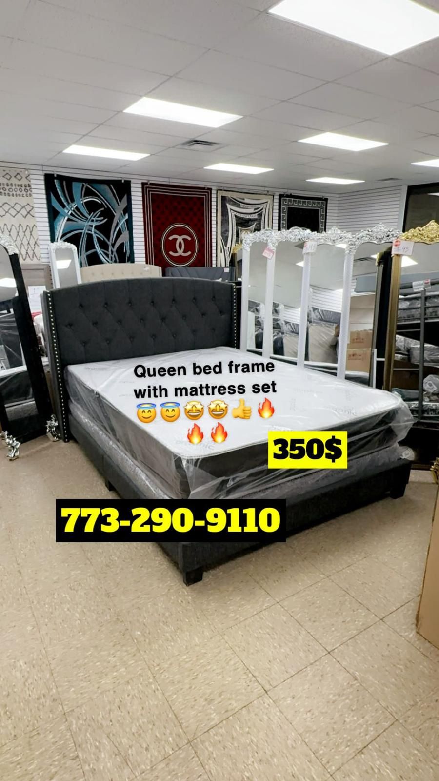 Queen Bed ποΈ Headboard Frame Mattress And Box Spring All Included Brand New Same Day Delivery π Or Store Pickup