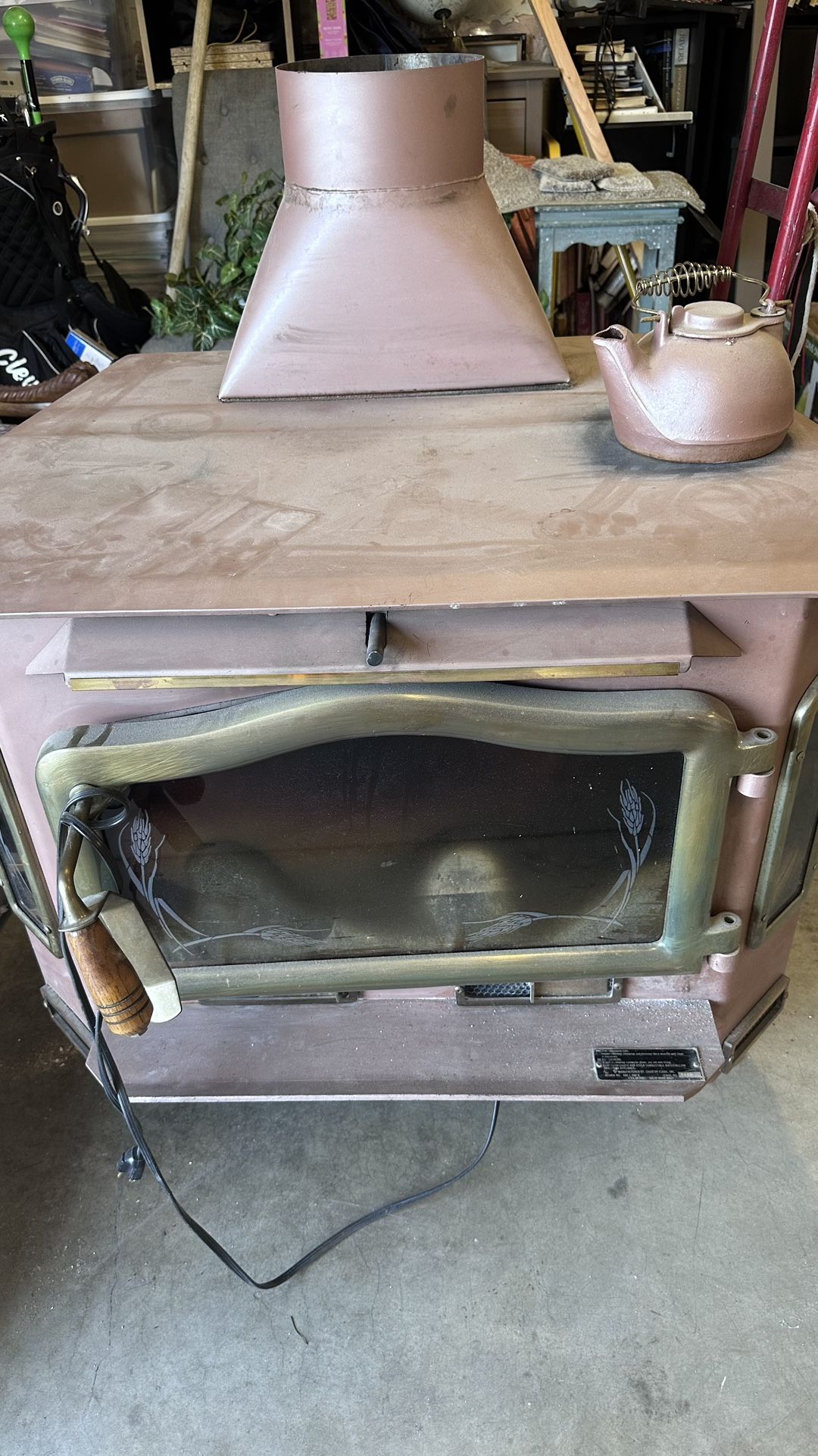 heavy wood burner stove, was used last winter— New. Homeowner has not used it very very heavy must pick up.