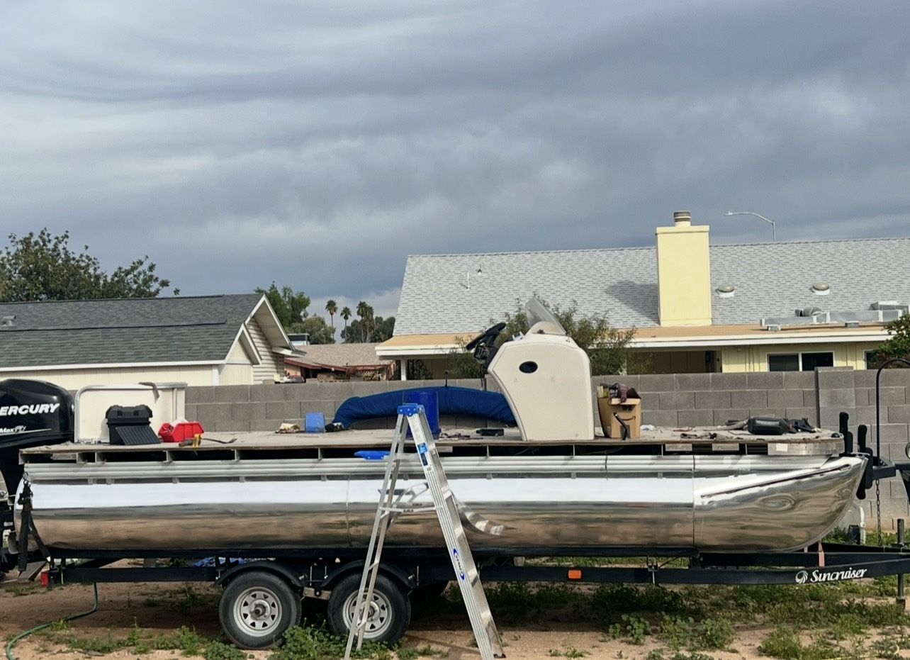 2009 Lowe Sun Cruiser LS 204 Pontoon Boat Was a failed project. Motor runs trailer is good. Needs tires. All the pieces are there. Text for questions six02 seven9 four 7534