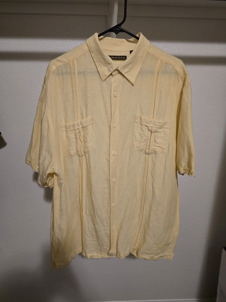 Cubavera Shirt Mens XL Yellow Button Up Short Sleeve Embroidered 2 Pockets