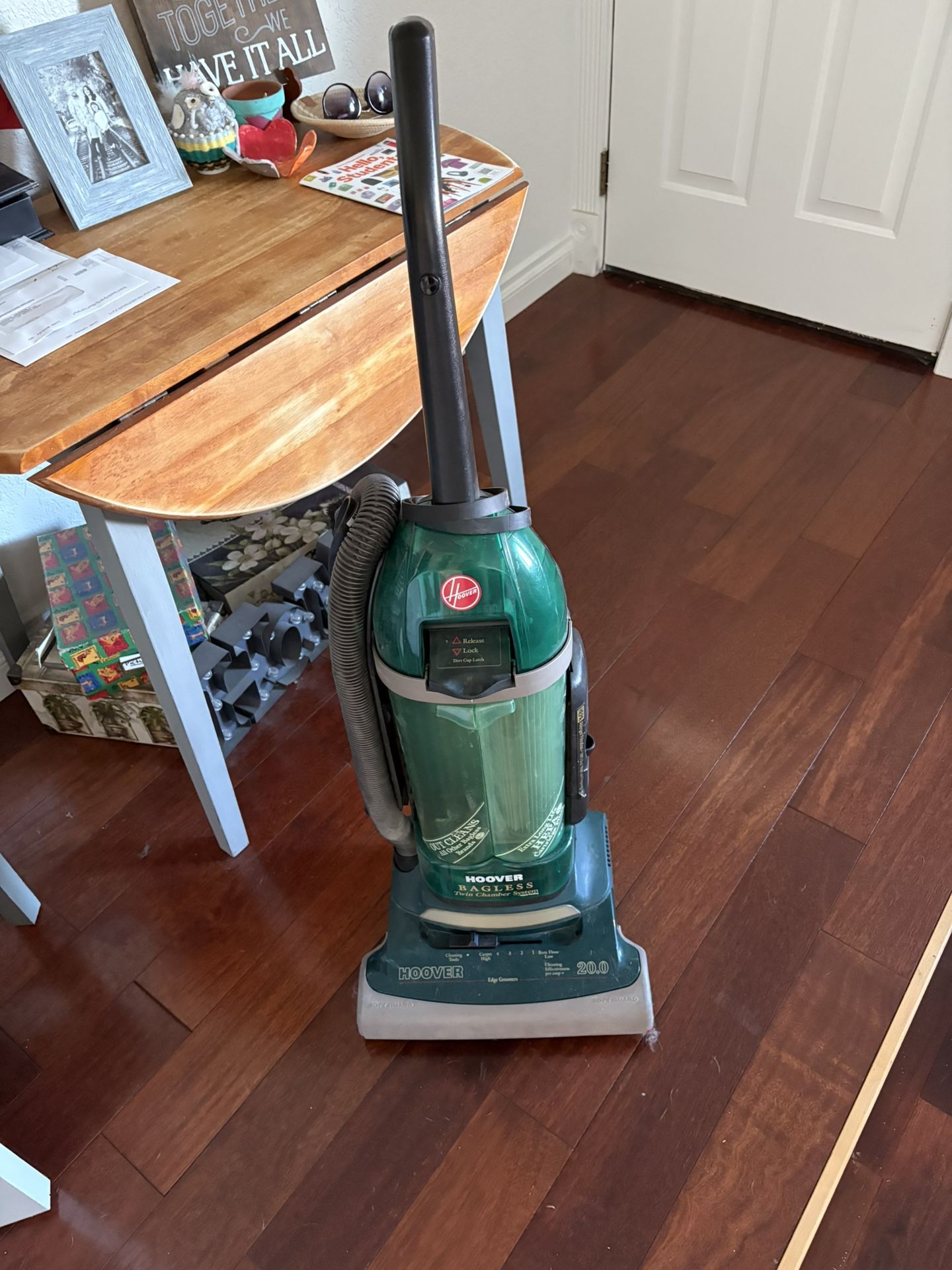 Hoover bagless twin chamber system. Comes with all the attachments. Works fine. Still in good shape.