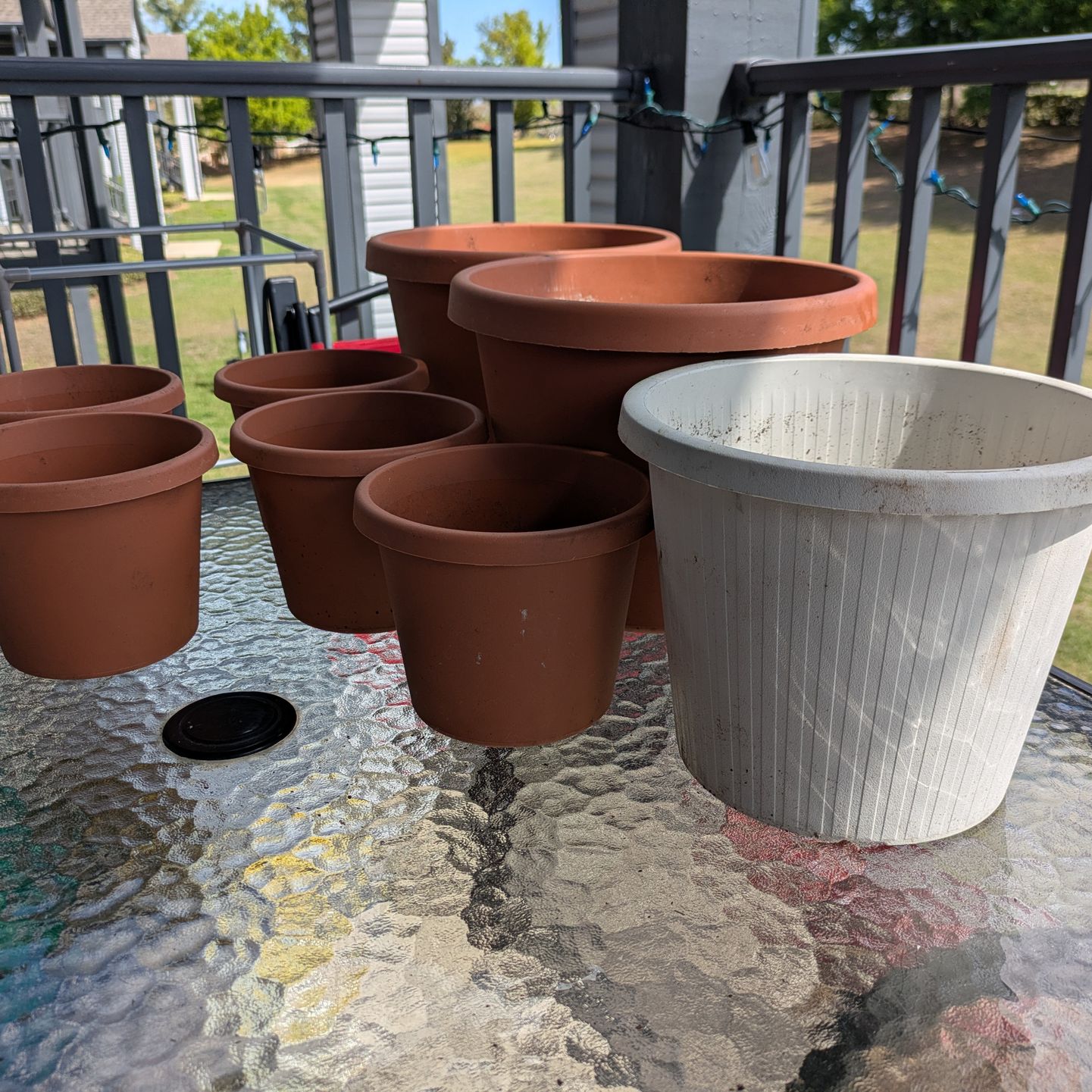 Hello! I have all these pots available! I did some cleaning and needed them off my balcony. $4 8 in $6 10 in $8 13 in Message me if interested! (contact info removed)
