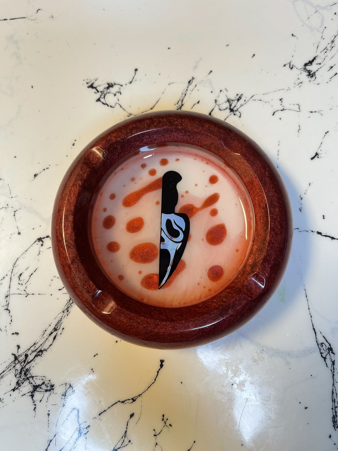 Bloody Red & White Glow in the dark Scream Resin Ashtray Size: 4.33in x 4.33in