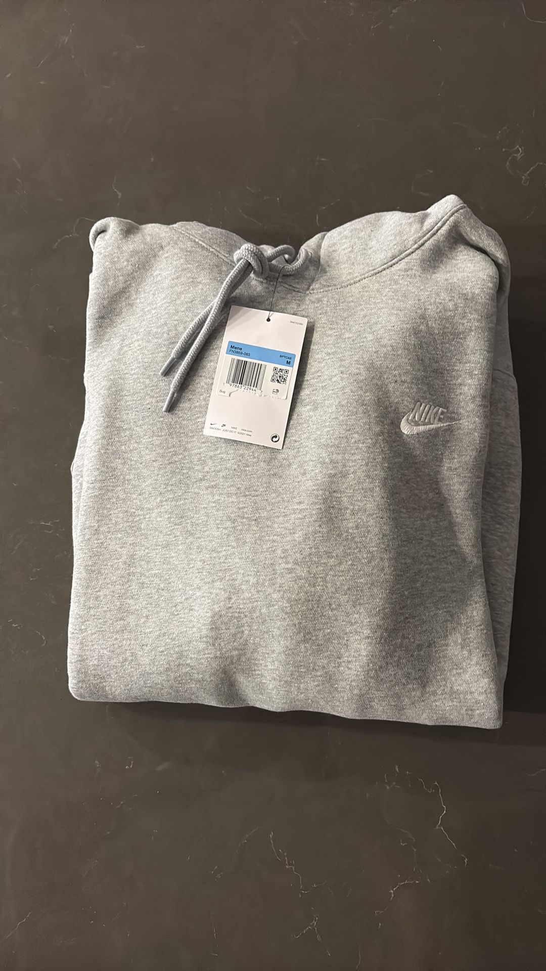 Brand new with tags Size Medium Color light gray Nike Club Fleece Pullover Hoodie, Material: Made from midweight brushed fleece that is smooth on the outside and extra soft on the inside. • Design: Features an adjustable drawstring hood, a spacious kangaroo front pocket, and ribbed cuffs and hem to help keep the cold out. • Branding: Includes the embroidered Nike Futura logo on the left chest