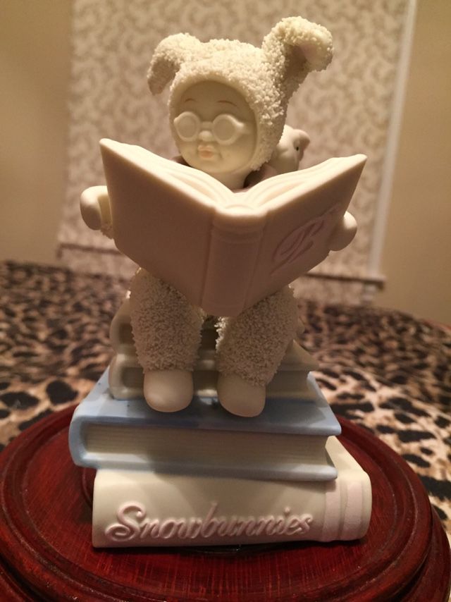 Snowbunnies “And B is for Bunny” figurine. This figure has a music box that plays “Here Comes Peter Cottontale” The head moves from side to side while the music plays. 5.5”H x 3.25”W x 4”D. Original box is slightly worn/torn. Has insert included. (Wooden display stand not included). Cash only. Local pickup.