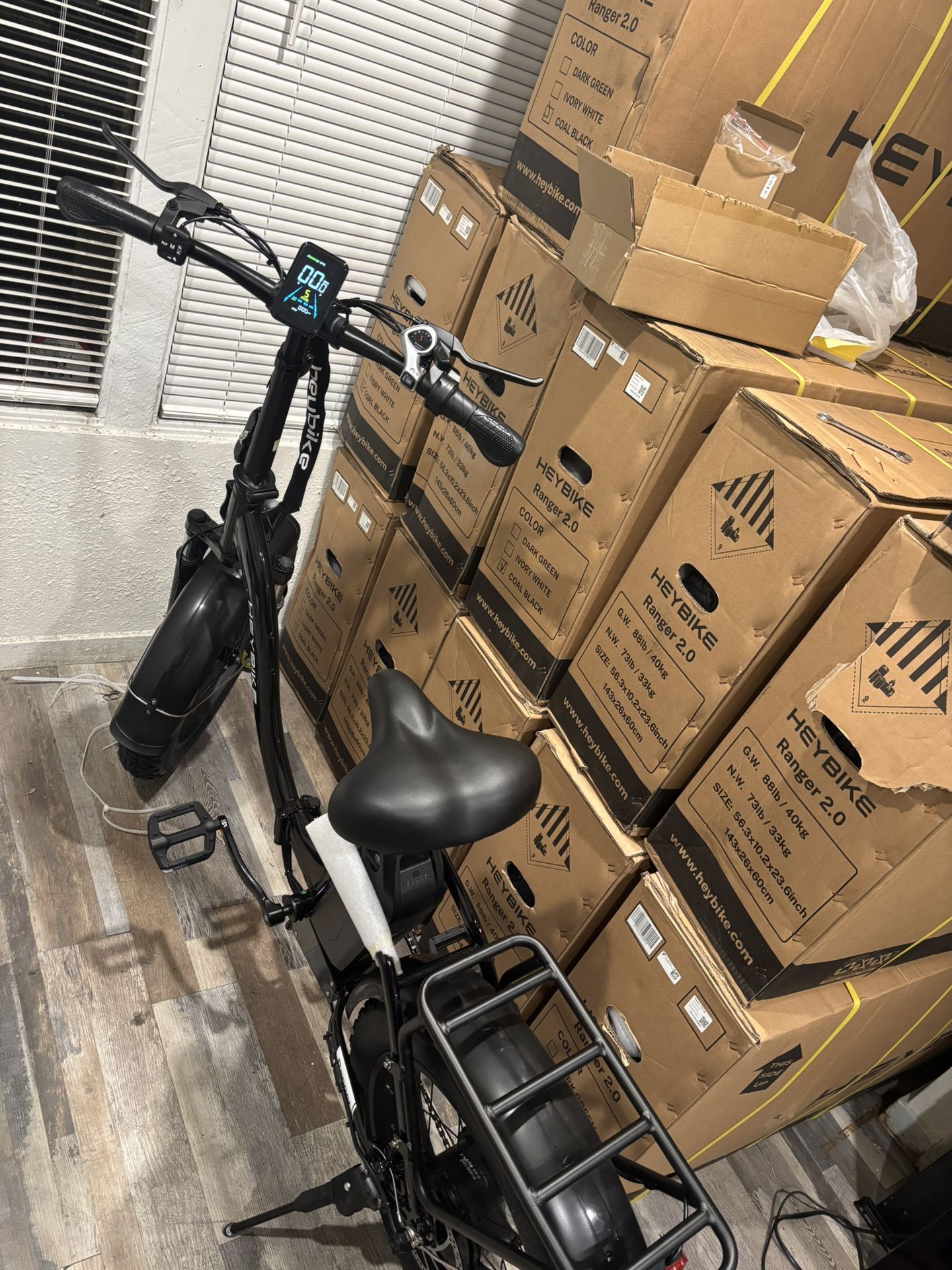 Only 4 left brand new in the box heybike Ranger 2.0 ,color Black , 1400w peak motor 28 mph 60 miles Range tire 20” x 4” only $399 Bicicletas electricas para adultos solo quedan 4