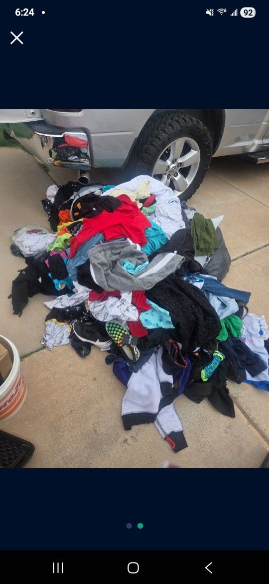 Tons of clothes. Too much too post. Take all for 60. Added more bags of clothes to the pile ( not pictured)