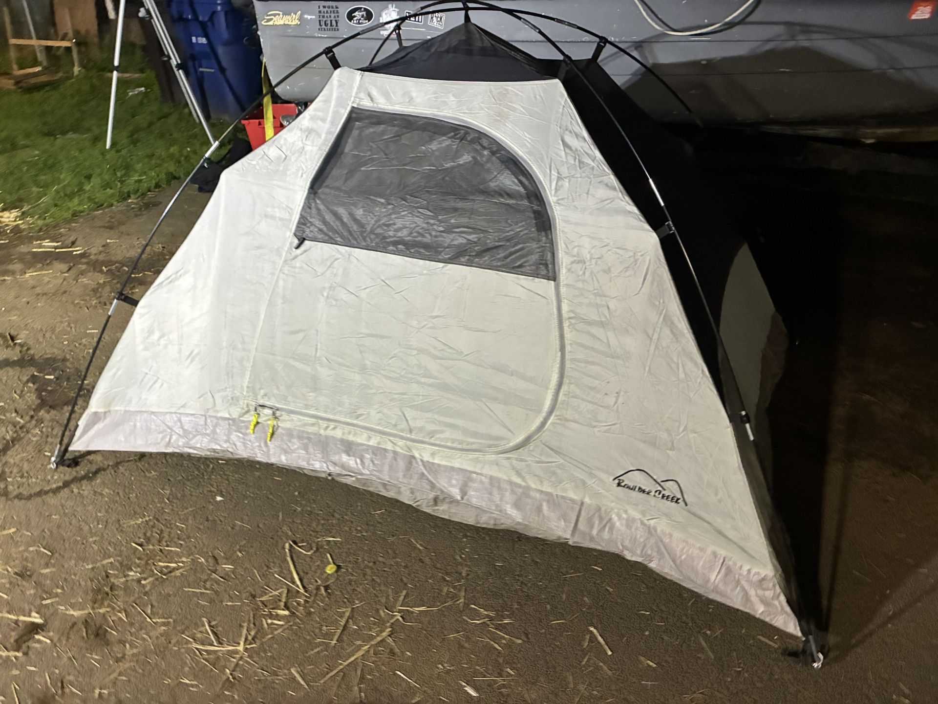 This tent is amazing it’s a really nice tent has great zippers and a solid rain fly nice and clean ready to go.