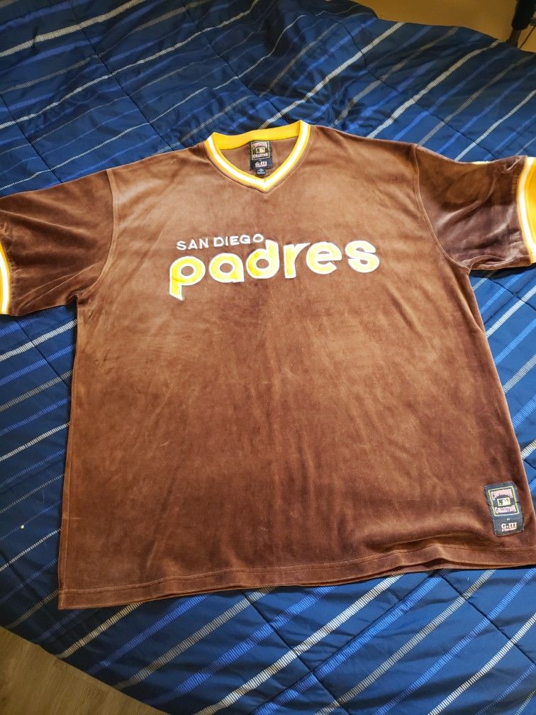 San Diego Padres brown pull over. Velour type material. Nice patch on sleeve. Mens XL. $30