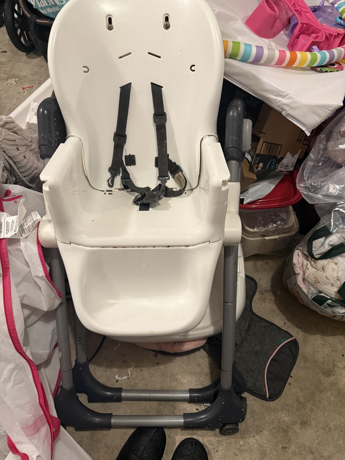 Used Highchair Comes with tray, tray cover, seat cover. Will need to be deep cleaned but it is great condition