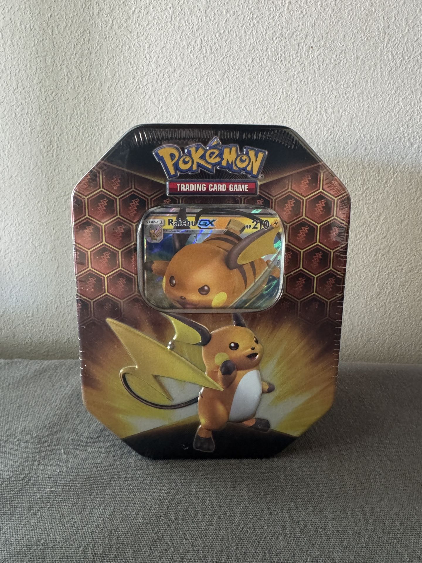 Comes with 1 Raichu GX promo card, four Hidden Fates Booster Packs!