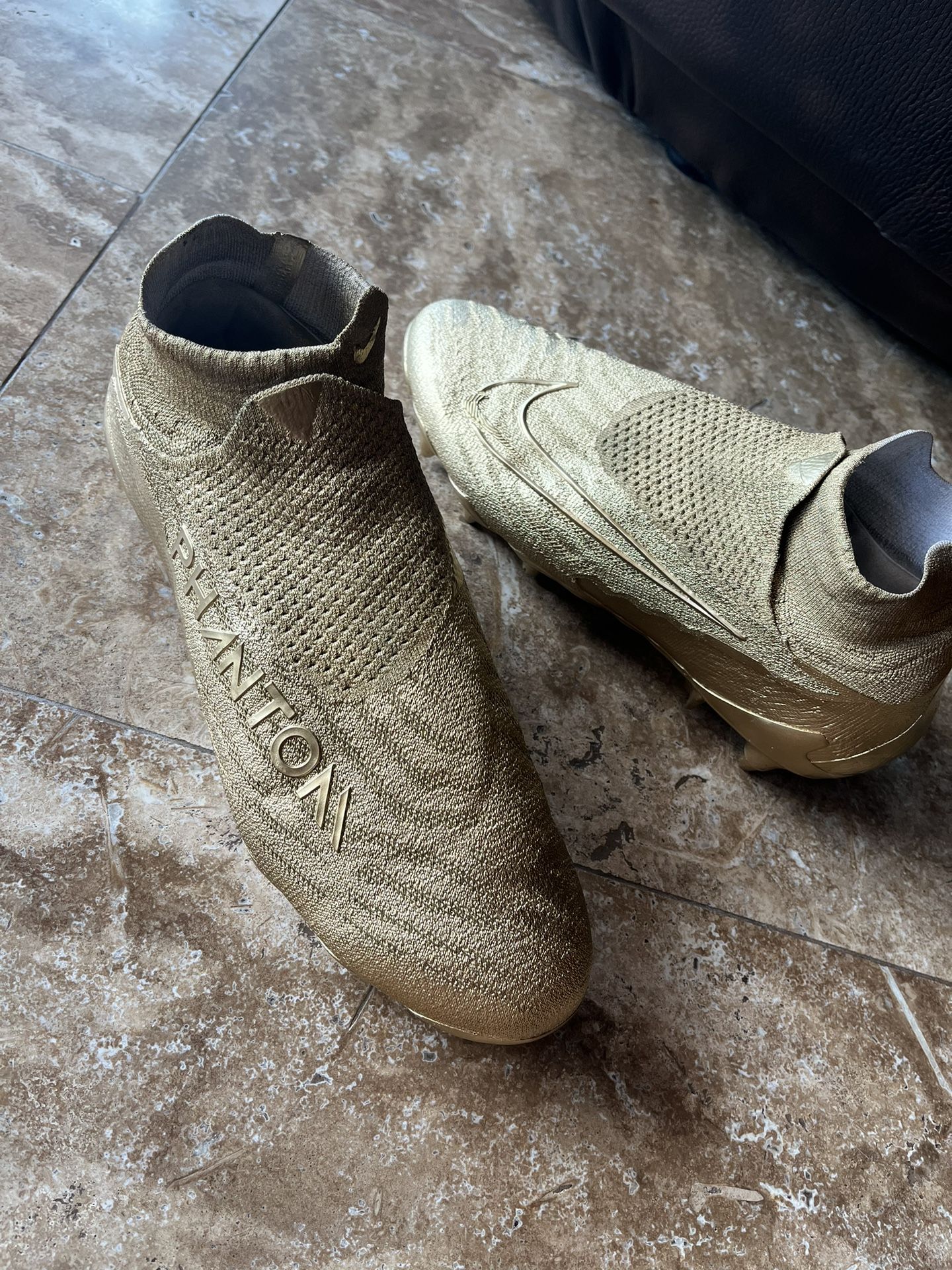 Nike phantom GX elite with metal studs laceless boots (you can add laces to them), I had them send out and custom made by a professional 1 of 1 cleats