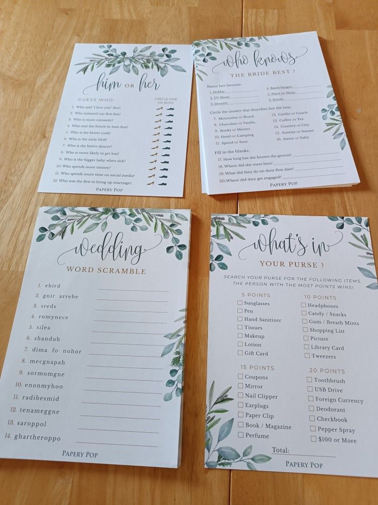 Bridal shower accessories paper parasol, lace fan, shower quiz game, photo booth props, Bride sash, makeup bag Condition for all items is used Details for each item: Ivory paper parasol umbrella made with compressed wood It can be closed and has a pin to keep it open Measurements Diameter 32 inches Length 22 inches White BRIDE makeup travel bag with Golden zipper and stencil letters Measurements Length 11 inches Depth 3 inches Height 5.5 inches Ivory lace fan made with compressed wood Measurements Length when opened 14 inches Collapsed length 9 inches Collapsed width 0.5 inches White sash with gold lettering says Bride to Be Measurements Width 3.25 inches Bridal shower quiz game by Papery Pop 4 different games Word scramble wedding, Him or her, Who knows the bride and What's in your purse 25 game cards for each double sided print, 50 total pages Photo booth prop set for wedding or bridal shower Statement signs & cartoon icons with sticks 15 statement signs 8 cartoon icons 18 sticks Five star seller. Pet and smoke free. Please see my other listings to bundle and save Tags - Fun style fashion trend party celebrate celebration announce wedding ceremony reception weddings parties Bride bridal Wed 20