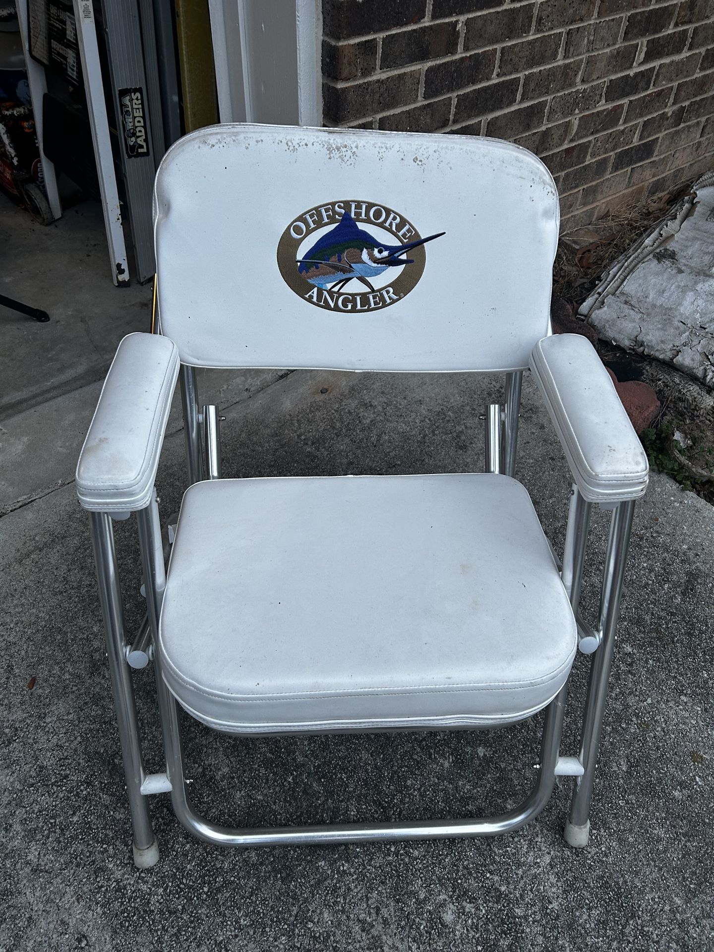 Used padded folding fishing chair. Chair purchased from Bass Pro online shop. Chair is very comfortable!