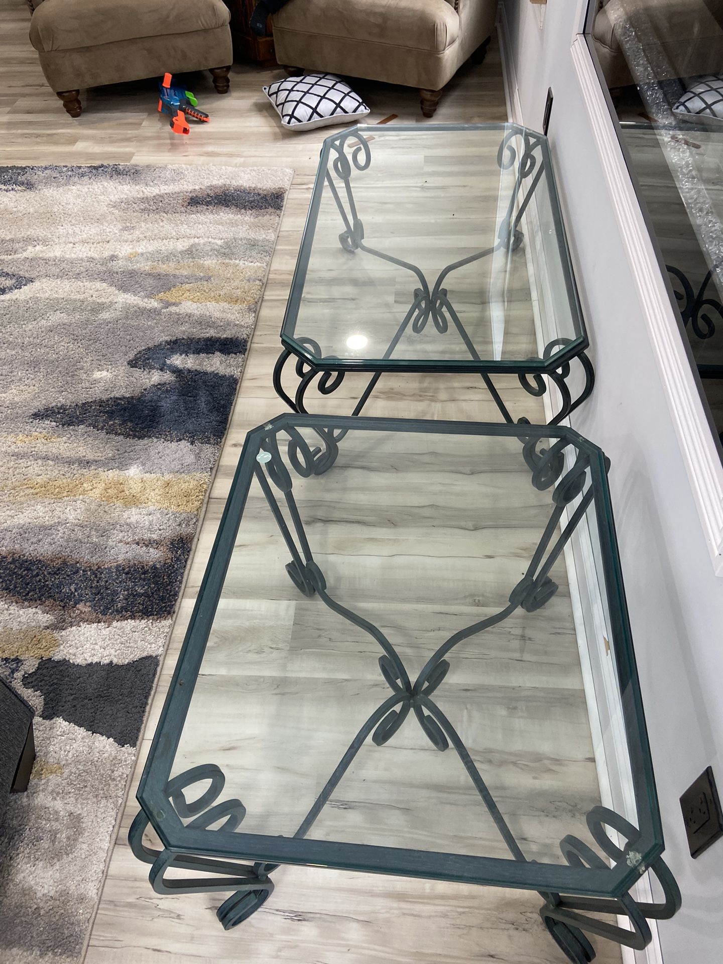Center Pc Table With 1 End Table Glass and wrought iron, great condition pick up in Snellvile $100 for both