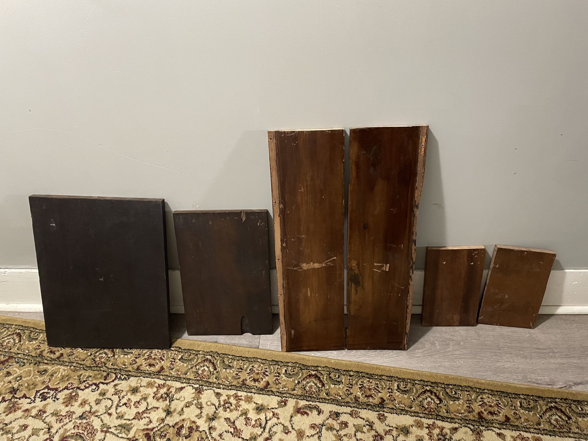 I am selling a lot of 6 pieces of reclaimed Urgos Grandfather Clock German Forest Hardwood These pieces are either oak or walnut.5 Pieces totalApproximately 5.5 sq ft 2 : 10" x 6"' x 1" 2: 25" x 7" x 1" 1: 15.5" x 10" x 1" 1: 18" x 14" x 1" Ideal for woodcrafting.