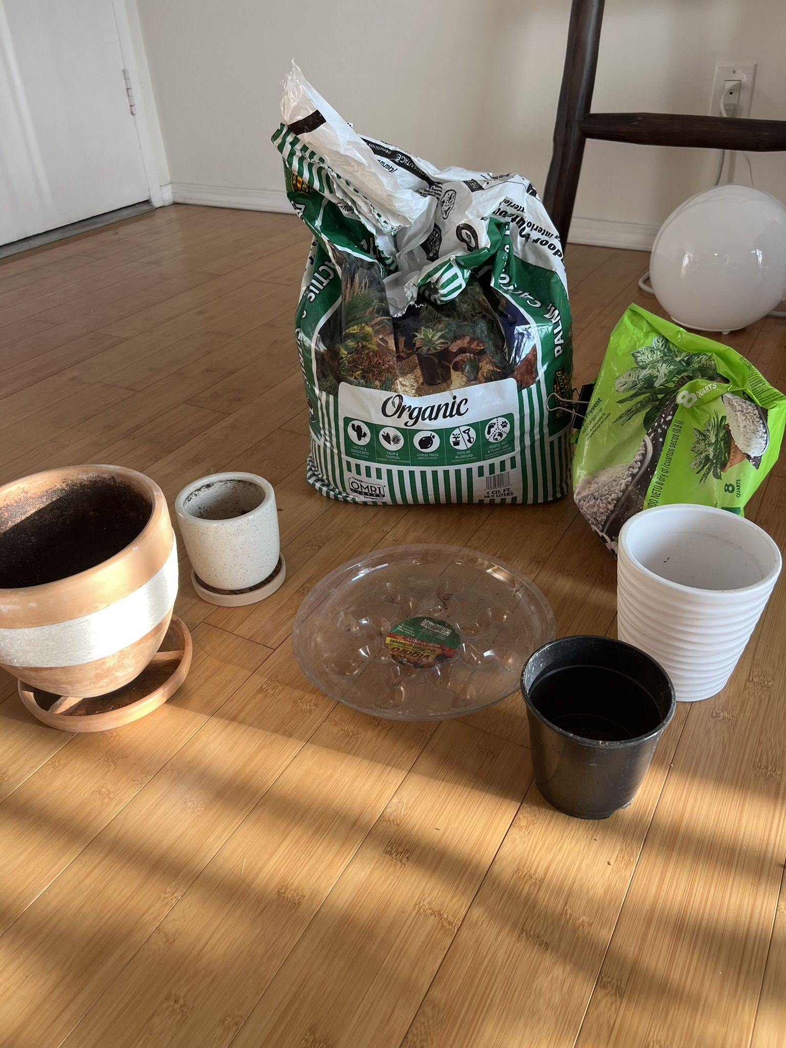 Selling a batch of different sized plant bots, organic soil, and perlite. Cash and pick up only. Thanks for looking! :D