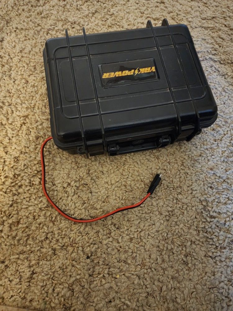 The battery box is compact and waterproof. Comes with the SAE connector, so ready to plug and play. Includes two 12V 1.3Ah batteries and the charger for those batteries.