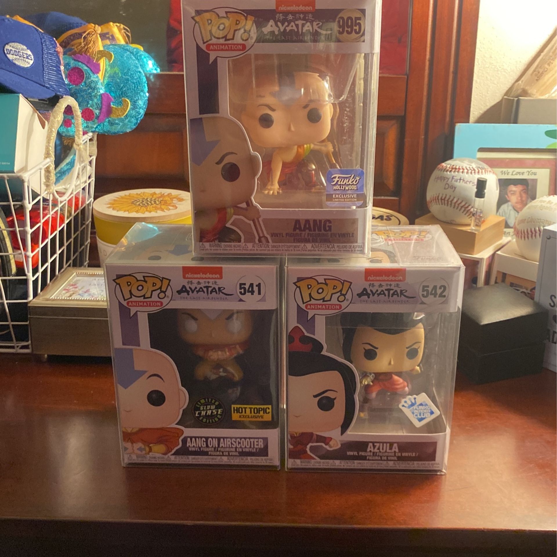 Aang on air scooter Hot Topic Chase. Azula Funko club exclusive Aang metallic Funko Hollywood exclusive $60 for the set