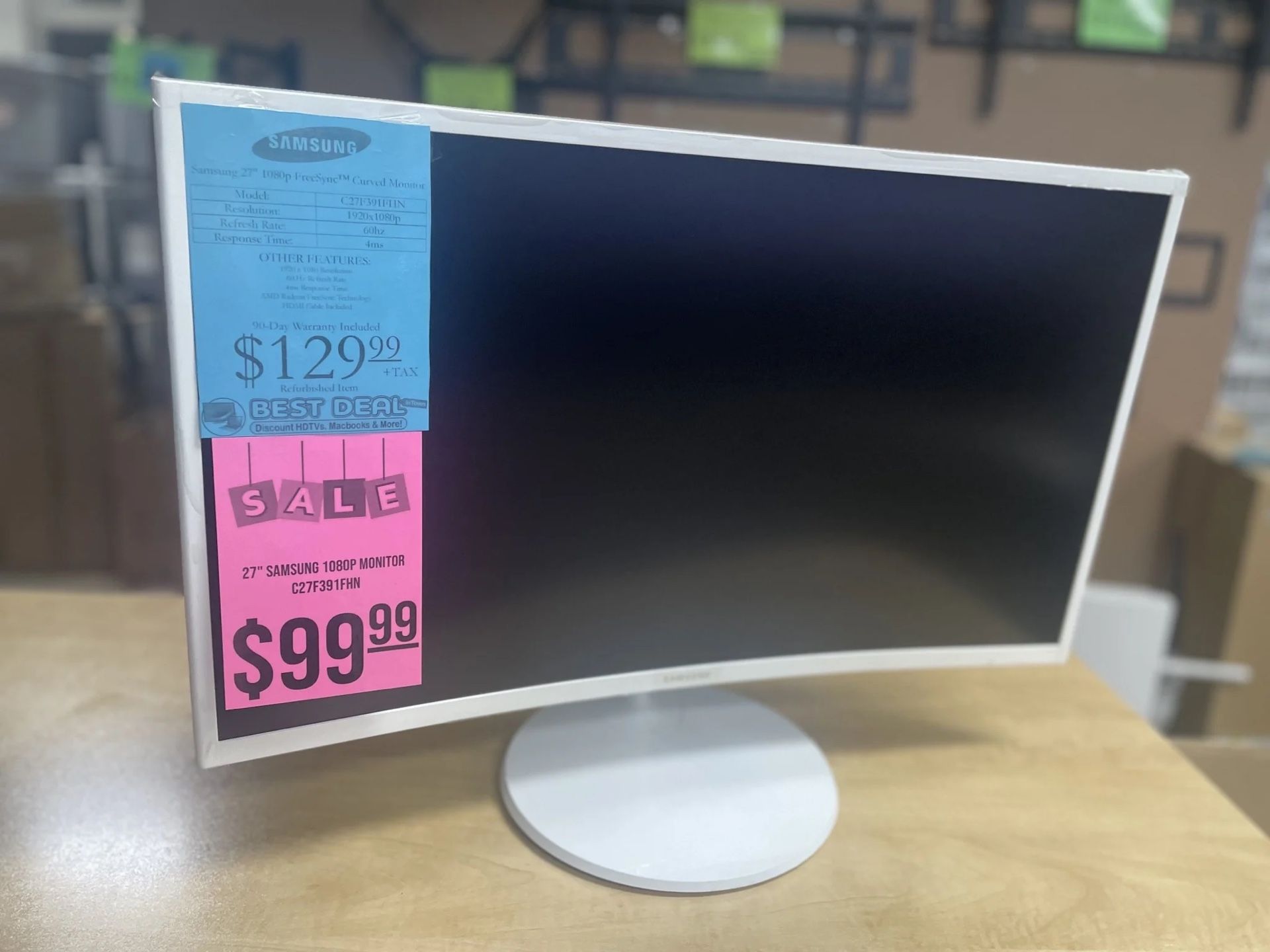 🚨 ‼️ 🔔 HUGE SALE 27" SAMSUNG 1080P WHITE CURVED MONITOR C27F391FHN FHD FREESYNC PRODUCT DETAILS The deepest screen curve for the most deeply immersive viewing experience Discover a truly immersive viewing experience with the Samsung monitor curved more deeply than any other. Wrapping around your field of vision like your local iMax theater screen, the 1800R screen - with its 1800mm radius of arc for greater curvature - creates a wider field of view, enhances depth perception and minimizes peripheral distractions to draw you deeper in to your content. So whether it is an online movie, a favorite TV show or a pulse-racing game, Samsung's deeper screen curve will fully immerse you in all your multi-media content. CHECK OUT BEST DEAL IN TOWN- ARIZONA’S LEADER IN DISCOUNT ELECTRONICS!!! 📍 Visit us at our new location: 5801 S. McClintock Rd, Tempe, AZ 85283 Between Baseline & Guadalupe! 🕙 Open 7 Days a Week: * Monday-Saturday: 10 AM - 7 PM * Sunday: 10 AM - 6 PM All TVs are certified open box items, including online shipping returns, box damage, overstock, and more. Each TV is tested, inspected, and comes with a 90-Day Warranty. Extended warranties available! 💳 Multiple Payment Options: Cash, Credit, or Debit accepted. (Sorry, no checks.) Note: All prices are plus tax (8.1% in Tempe). 🚀 Take Home Today for just $49 + tax with our no-credit-needed lease-to-own option through Progressive. Apply before you visit to see what you’re approved for! Don’t miss out on these amazing deals. See you at Best Deal in Town! #TVSale #BestDealInTown #DiscountElectronics #TempeAZ #OpenBoxTVs #LeaseToOwn #90DayWarranty Samsung LG Sony TCL Vizio Hisense Panasonic Philips Sharp Insignia