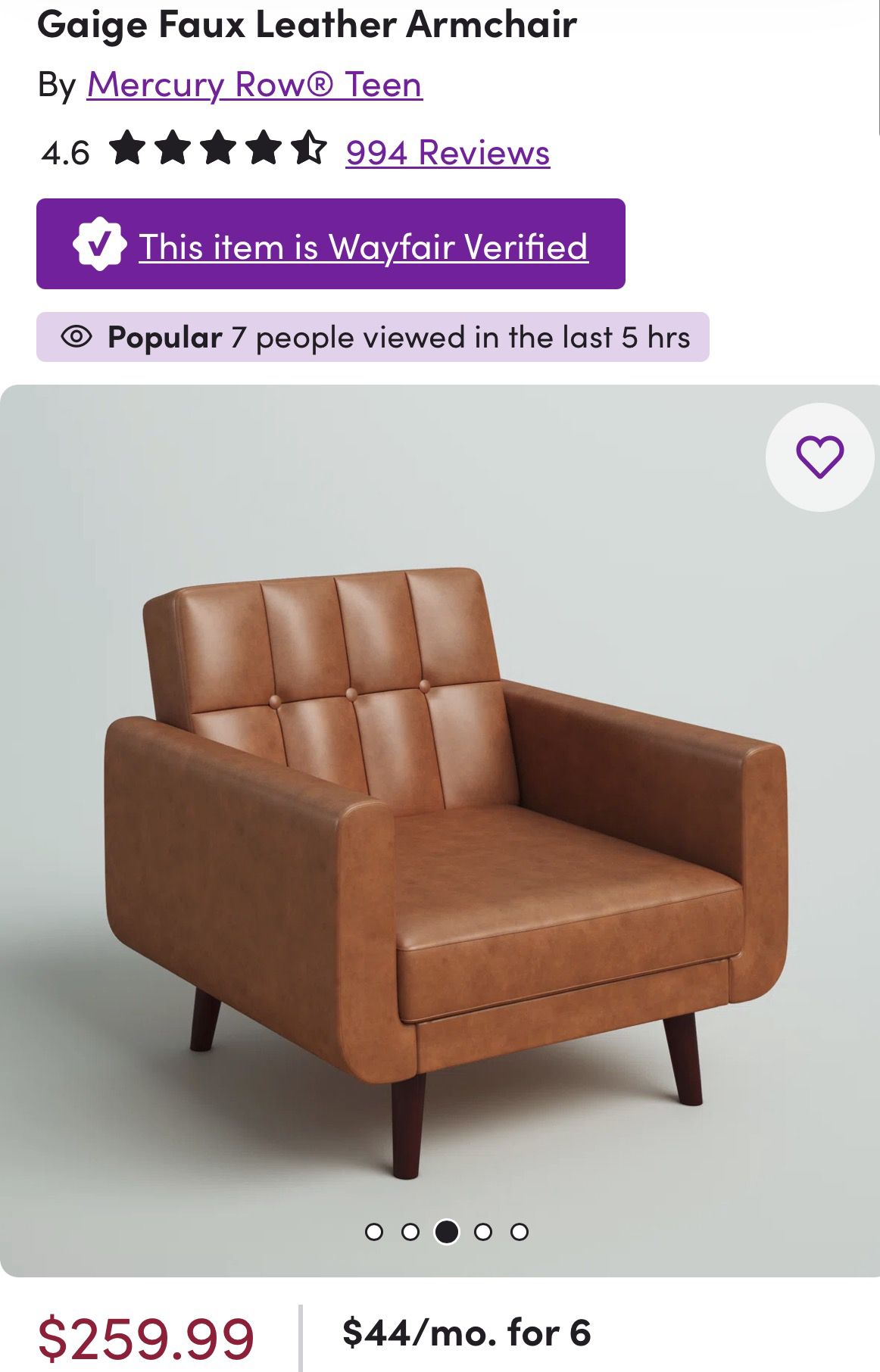 Camel Brown Faux Leather Armchair