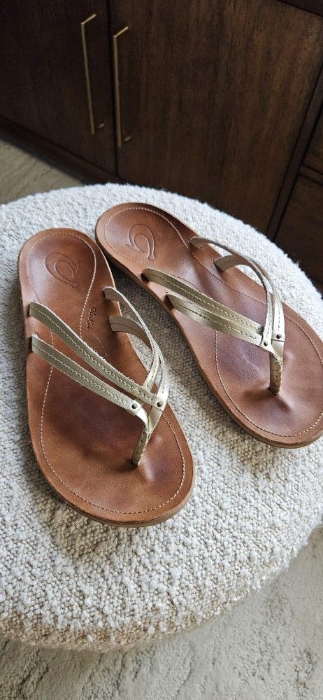 OluKai gold double strap thong flip-flop, Womens size 7. Worn only once! Beautiful condition.