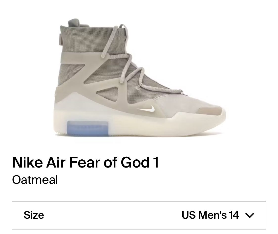 Nike Fear Of God Oatmeal Size 14