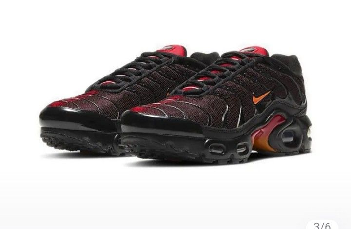 New never worn. Stored away in closet. Not original box but authentic box for 6.5 Nike Air Sneakers. Catalog Home/Sneakers/Nike Size: 6.5 Color: Black, Red Series Air Max Plus Style ID CV9636-001 Heel type Flat Upper Height Low-top Upper Material Fabric