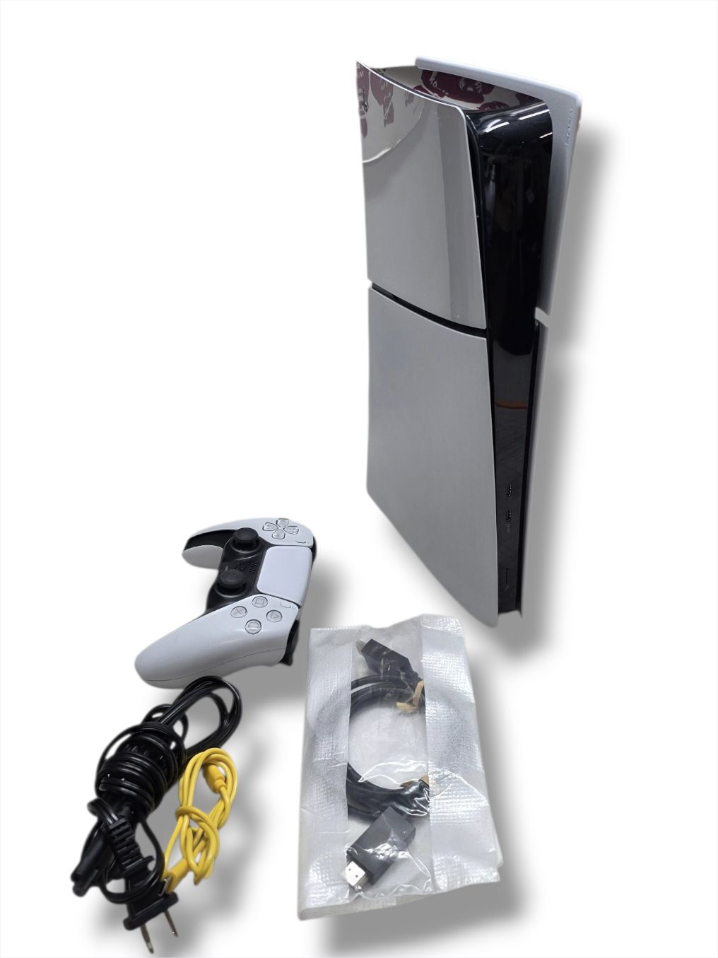 Here we have a pre-owned Sony PlayStation 5 Slim Digital Edition. It works great, is fully restored, and ready for plug-and-play. There is very minor wear on the console, and the remote shows some scratches under the grips. If you have any questions, feel free to message me.