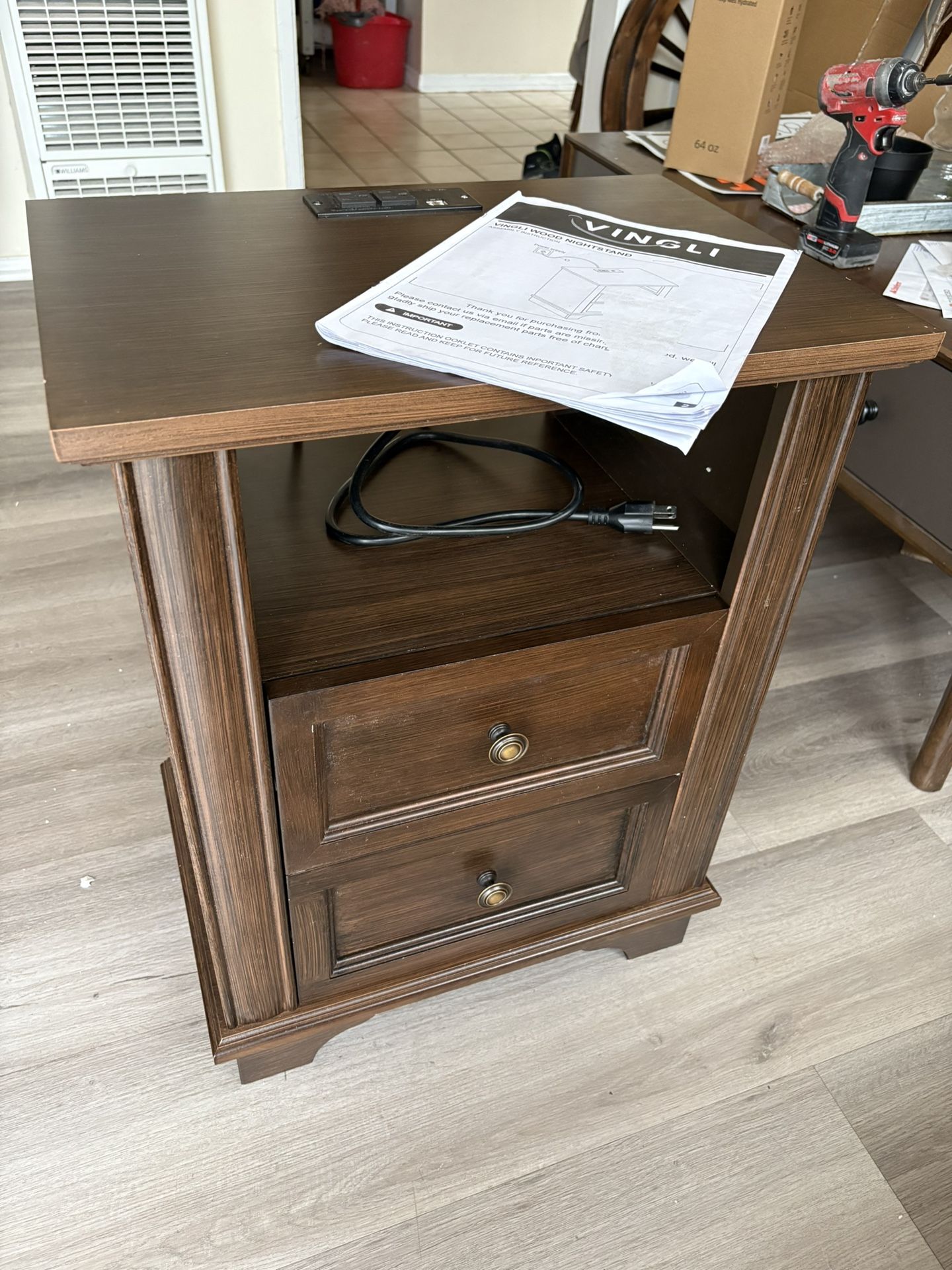 VINGLI 19.7" Nightstand with Charging Station, Wood Nightstand with Drawers, Night Stand for Bedroom, Bed Side Table, End Table, Brown, 19.69" W*13.78" D*25.67" H