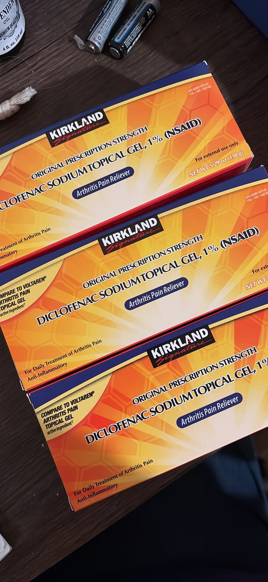 Kirkland brand arthritis pain relief. 2 expire 7/2025 1 expired 7/2024. Normally sells in a 3 pack for $43. Selling all 3 for $20