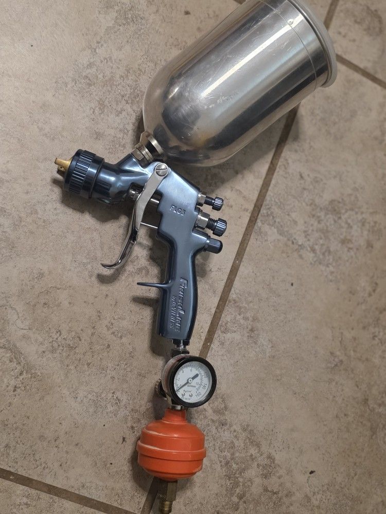 This Devilbliss Finishline FLG3 gravity feed sprayer has only been sitting here and going unused. My loss is your gain. This has not had a single drop of paint run through it.