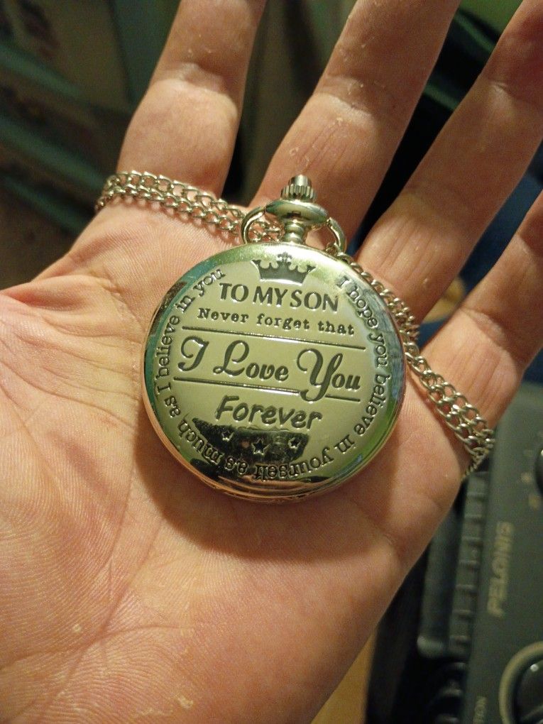 Pocket Watch On Chain Says To My Son Never Forget I Love You In Perfect Condition