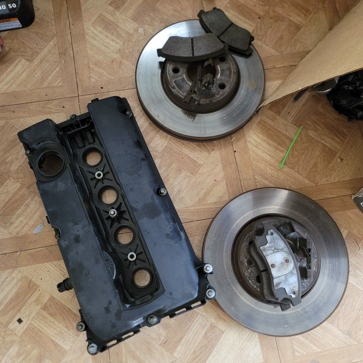 Came off a 2015 Cruze 1.8 Engine Official GM parts Valve cover has all bolts and in great shape just no gasket. I replaced the gasket and cover all at once so don't need anymore. Brake rotors have about 80k miles on them, but can still be resurfaced and reused. Brake pads still have a little life left. $10 takes it all. Pick up only, no holds