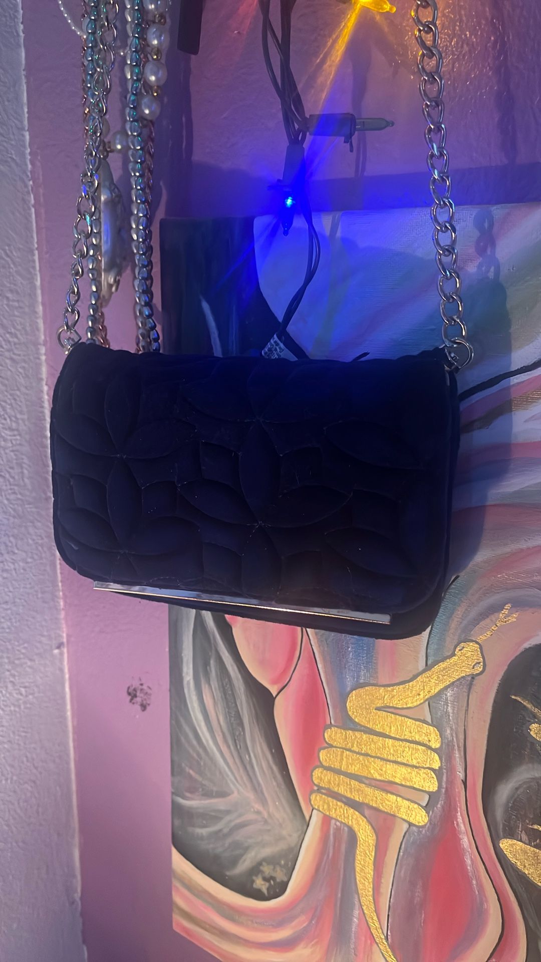 Royal Blue Suede Evening Clutch W Chain