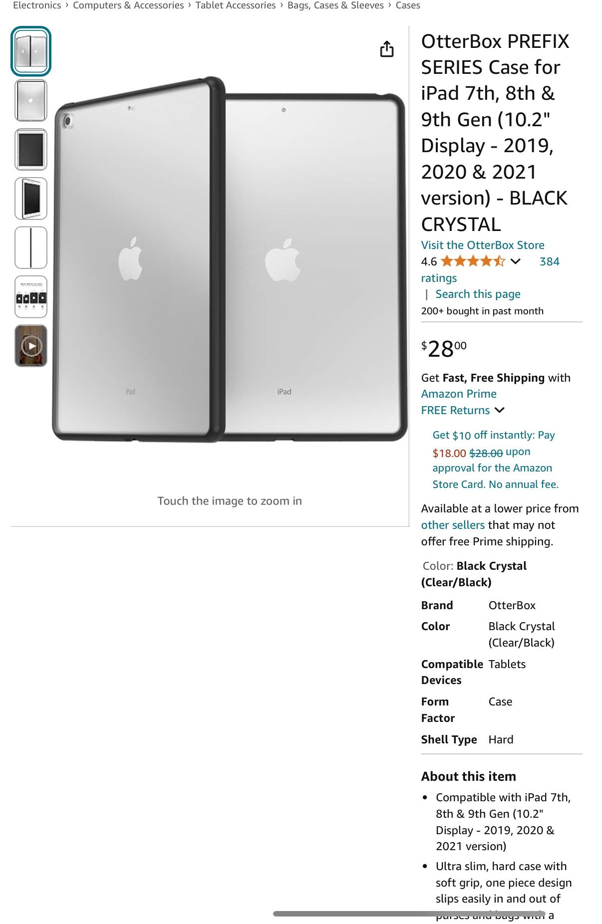 OtterBox PREFIX SERIES Case for iPad 7th, 8th & 9th Gen (10.2" Display - 2019, 2020 & 2021 version) - BLACK CRYSTAL