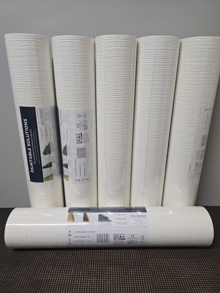 (6) New Paintable Vinyl Pre-Pasted Washable Wallpaper Roll Covers 56.4 Sq. Ft. A Roll. $60 for all