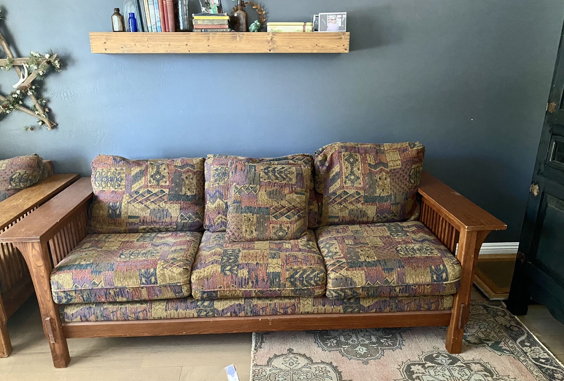 Very well built sofa with solid wood. Cushions in excellent shape. Has matching chair. 400.00 for set OBO