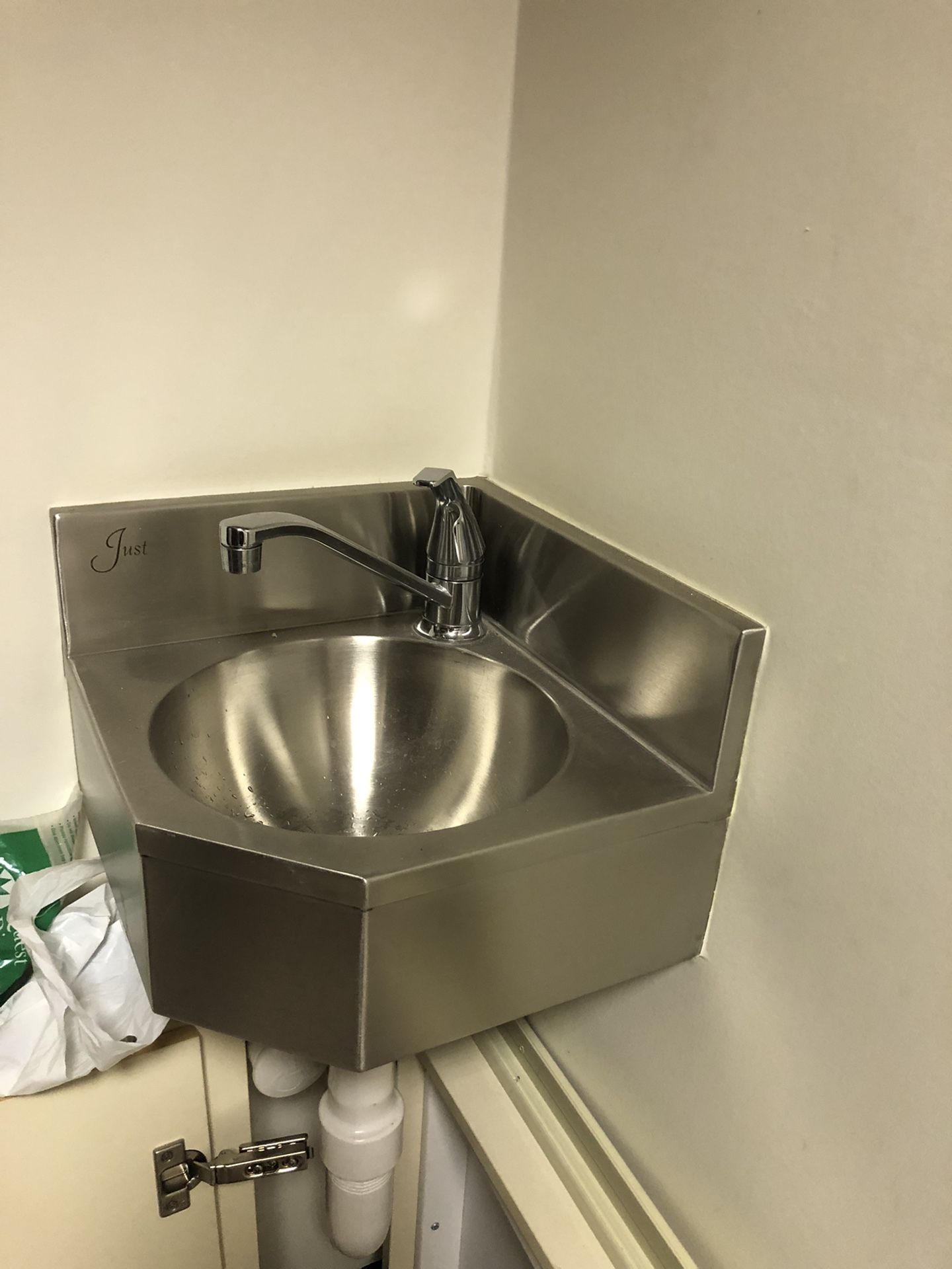 Corner stainless steel sink; 12 1/2” x 12 1/2” As is; pickup only in 15223; dismantling required; serious inquiries only