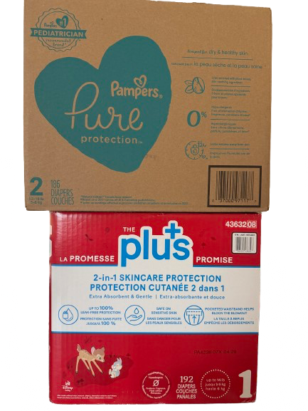 BRAND NEW Price is for both π Pampers Pure size 2 186 count Huggies Snugglers Plus Size 1 192 count Baby Diapers Pampers Huggies