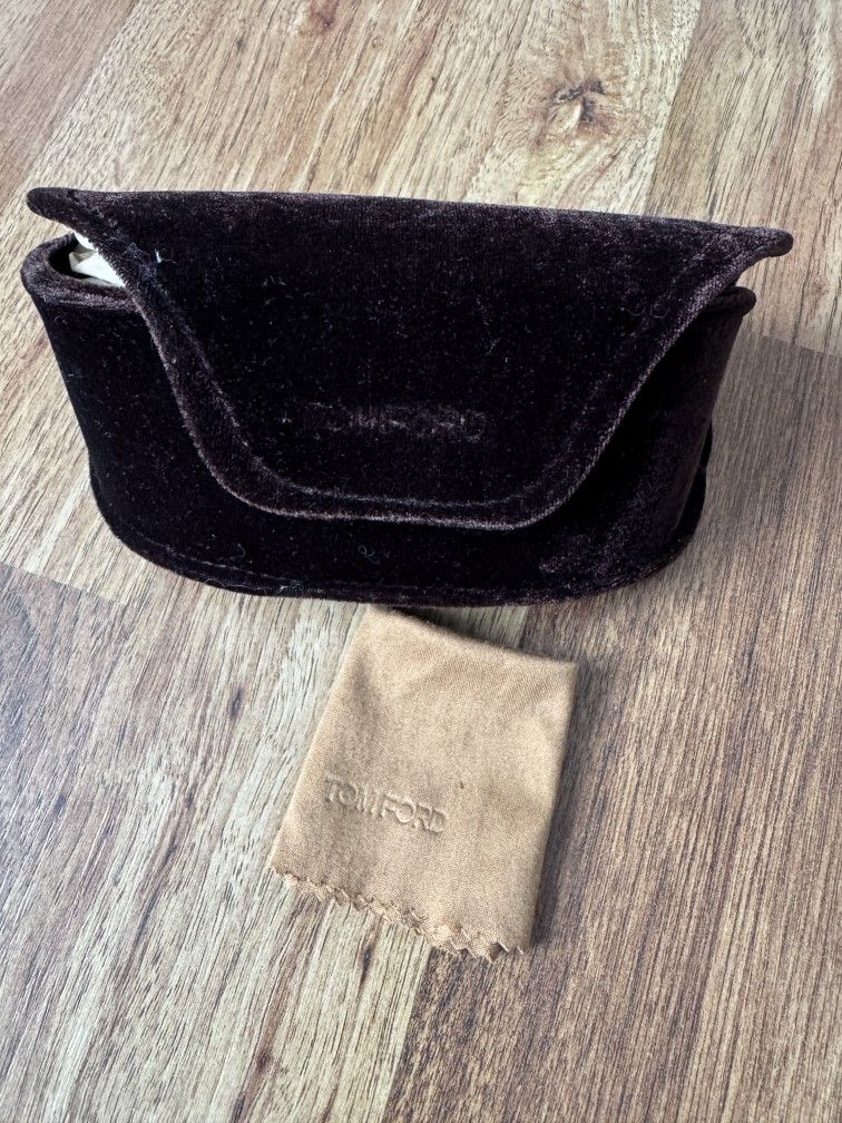 Protect your luxury eyewear with this genuine Tom Ford accessory set. This stylish and functional duo is perfect for replacing a lost case or adding a touch of designer sophistication to your daily essentials. Product Features: Designer Hard Case: Features a rich, dark brown velvet-texture exterior that provides a premium look and soft hand-feel. Embossed Branding: The Tom Ford logo is elegantly embossed on the front flap of the case for subtle brand recognition. Coordinating Cleaning Cloth: Includes an authentic, tan-colored microfiber cleaning cloth. Cloth Branding: The cleaning cloth features the "TOM FORD" logo pressed into the fabric. Condition: Condition: Pre-owned – Good condition. Notes: The velvet exterior shows light signs of lint and normal handling, which is typical for this material. The cleaning cloth is intact and functional. Included in this Sale: 1 x Tom Ford Velvet Hard Case 1 x Tom Ford Microfiber Cleaning Cloth