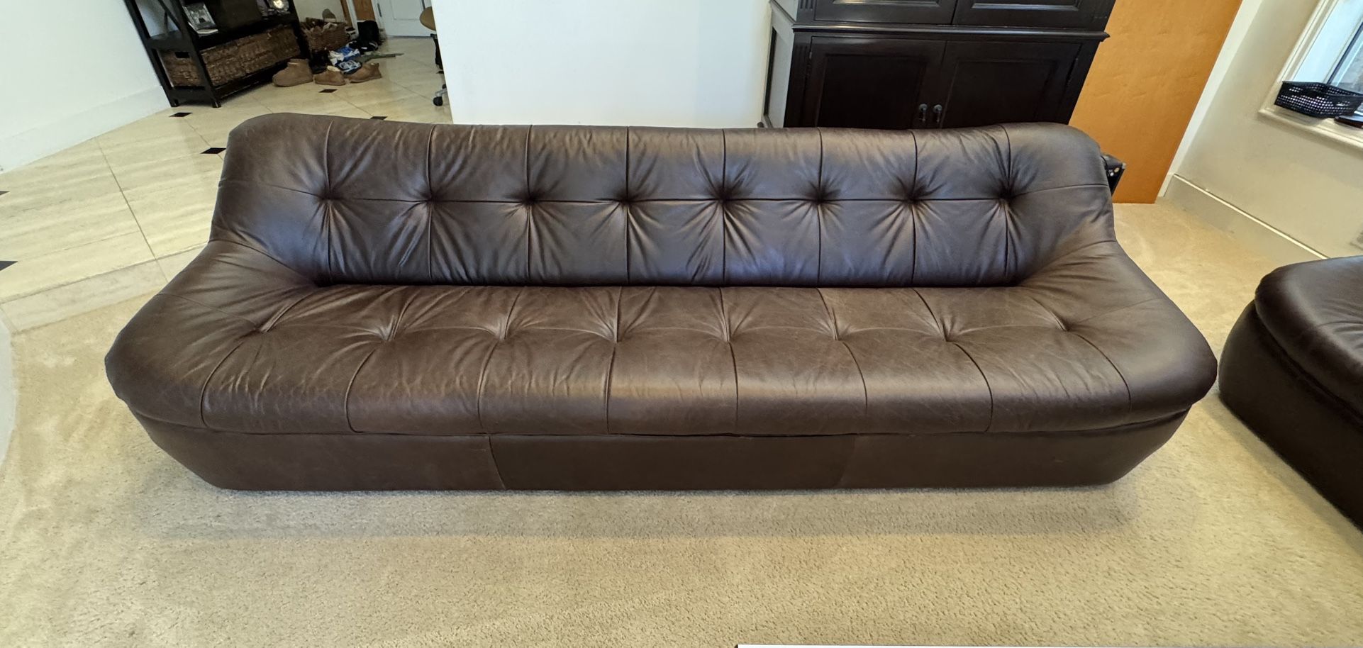 Genuine Leather Tufted Sofa