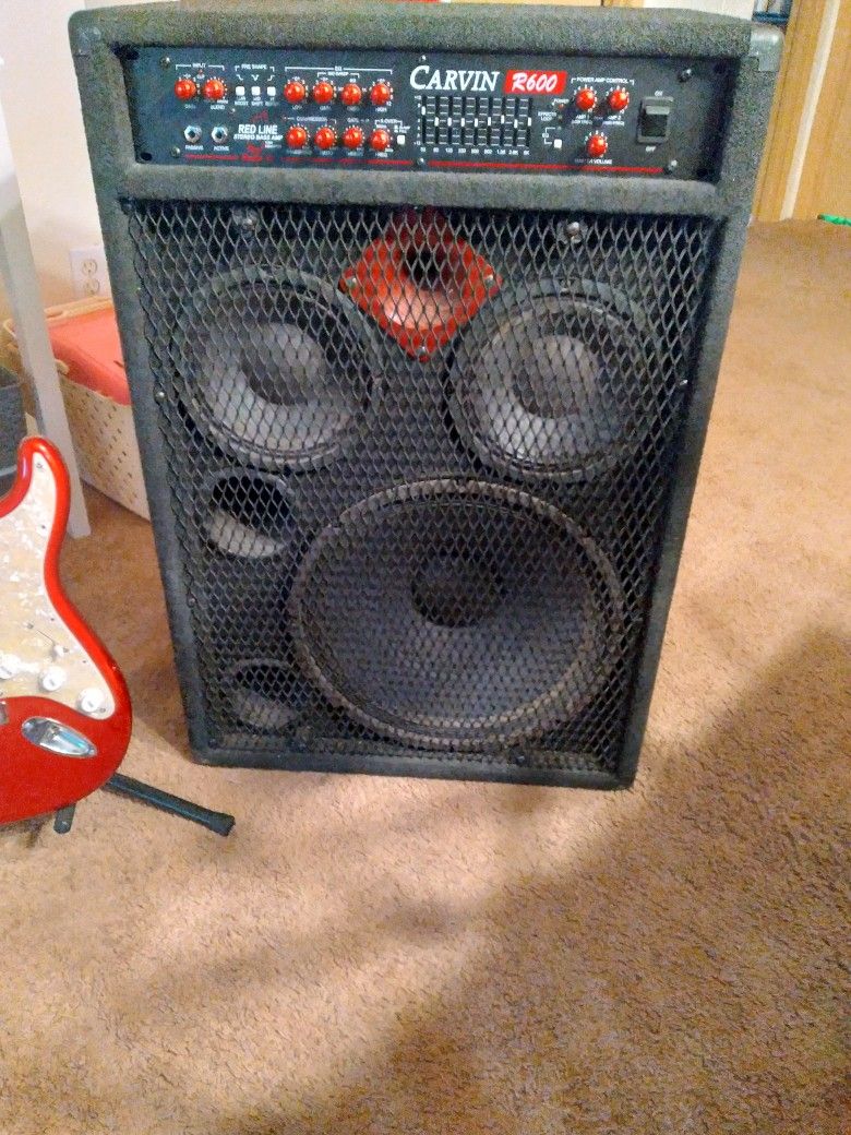 Carvin Bass Combo Amp Model RL6815 R600 power Amp paired with one 15" woofer, two 8" midrange and one tweeter. Works great, good shape, pretty wide range of sounds out of this Amp. Dont need it anymore and trying to make space.